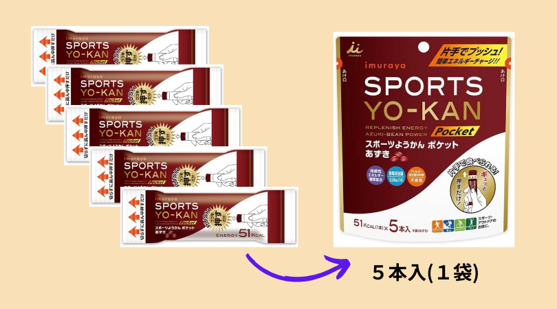 スポーツようかんポケットあずきは、1本18gで51kcal、塩分0.06gを補給できます。